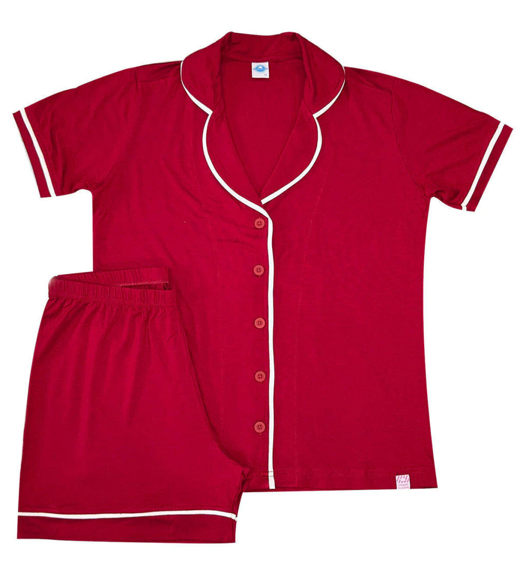 Pijama Feminino Modelo Americano em Viscolycra – Vermelho com Viés Branco
