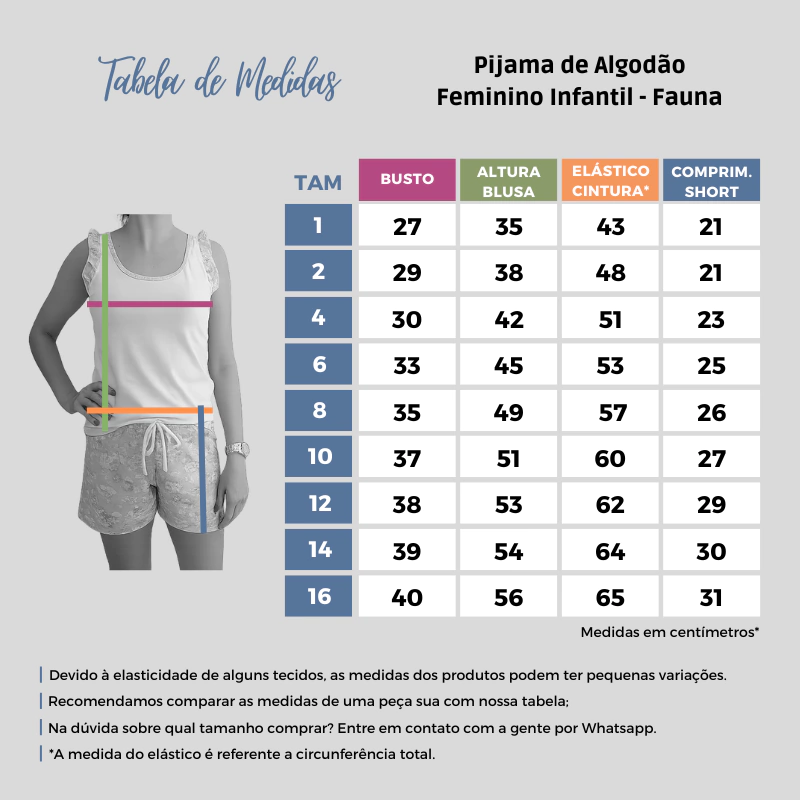 O pijama feminino Fauna é perfeito para as pequenas aproveitarem os momentos de descanso com muito estilo.